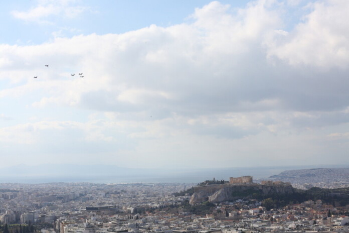 Λίγο πριν φτάσουν για πρώτη φορά στην Τανάγρα, τα πρώτα έξι Rafale πέταξαν πάνω από την Ακρόπολη.
