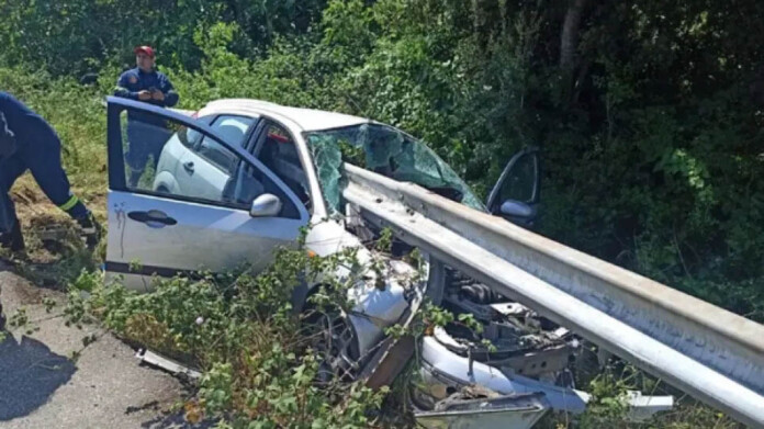Στην επιχείρηση απεγκλωβισμού του οδηγού, συμμετείχαν πέντε πυροσβέστες με δύο οχήματα.