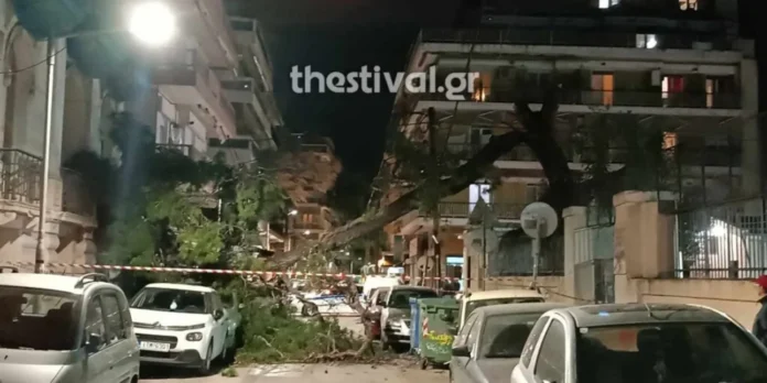 Ένα δέντρο που ήταν ετοιμόρροπο έπεσε και καταπλάκωσε σταθμευμένα οχήματα το απόγευμα της Δευτέρας στη Θεσσαλονίκη, σύμφωνα με το thestival.