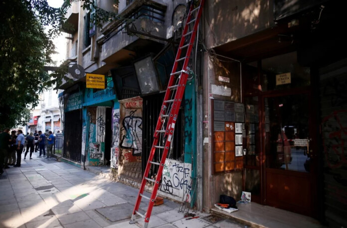 Παρουσία δικαστικού λειτουργού, αστυνομικές δυνάμεις από νωρίς το πρωί έκαναν έφοδο στο κτίριο, όπου εκείνη τη στιγμή δεν υπήρχαν άτομα μέσα, και κατέσχεσαν -μεταξύ άλλων- κράνη, στειλιάρια, πυροσβεστήρες, ένα αλεξίσφαιρο, μπουκάλια μπύρας κ.ά. Τα κατασχεθέντα αντικείμενα αναμένεται να αποσταλούν για περαιτέρω εξέταση στα εγκληματολογικά της ΕΛ.ΑΣ.
