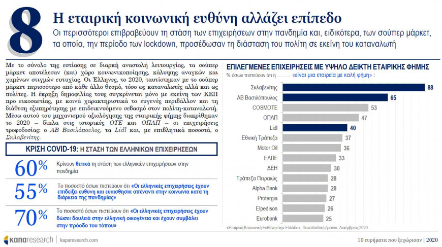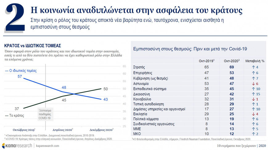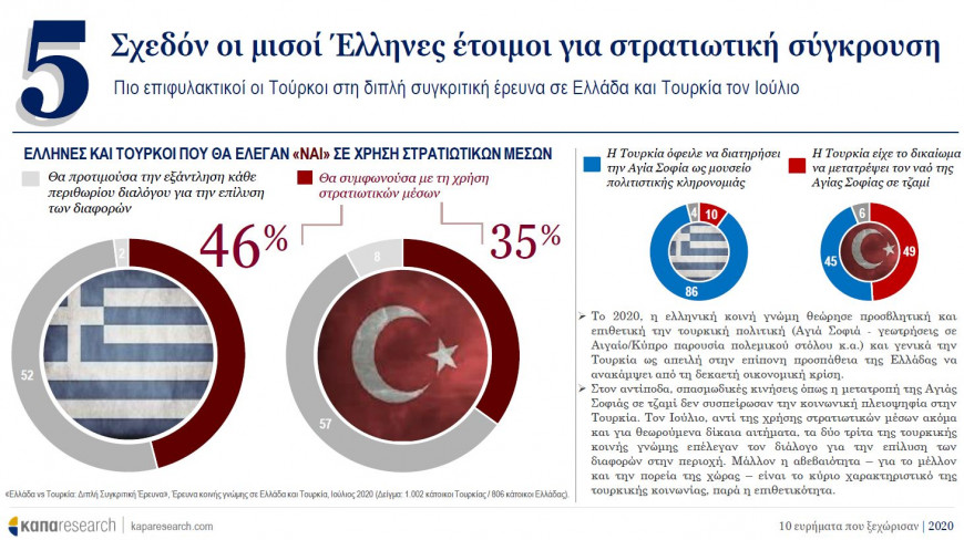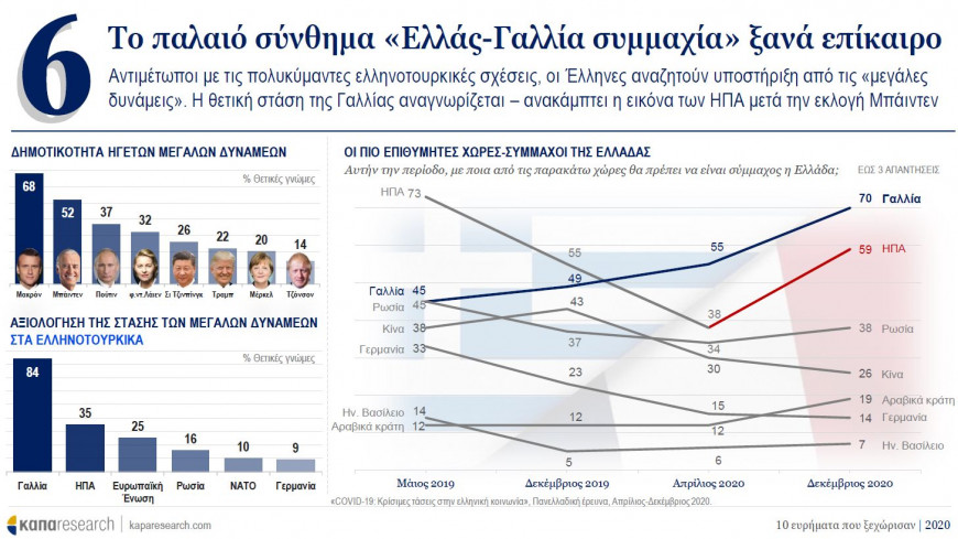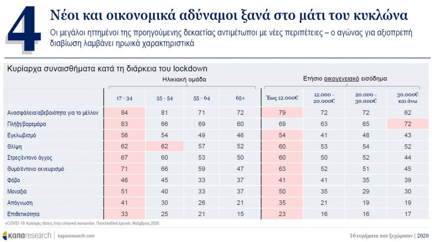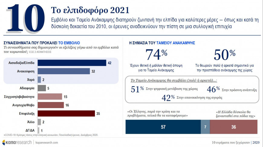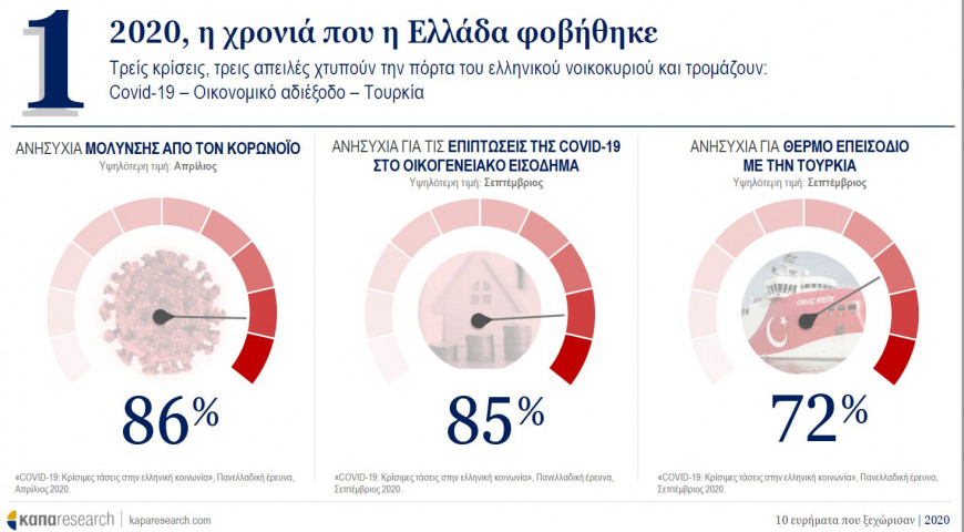 Πώς νιώθουν εν μέσω πανδημίας, πώς «βλέπουν» την κατάσταση με τα ελληνοτουρκικά, αλλά και σε τι ελπίζουν το 2021 οι Έλληνες; Αυτές είναι μερικές από τις ερωτήσεις που τέθηκαν από την Κάπα Research, που παρουσιάζει τα 10 ευρήματα που ξεχώρισαν τη χρονιά που φεύγει.