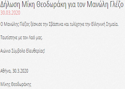 «Ο Μανώλης Γλέζος ξέσκισε την Σβάστικα και τυλίχτηκε την Ελληνική Σημαία. Ταυτίστηκε με τον Λαό μας. Αιώνιο Σύμβολο Ελευθερίας!»