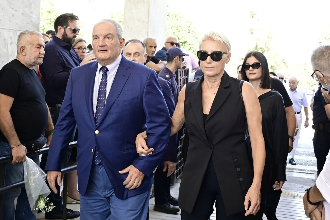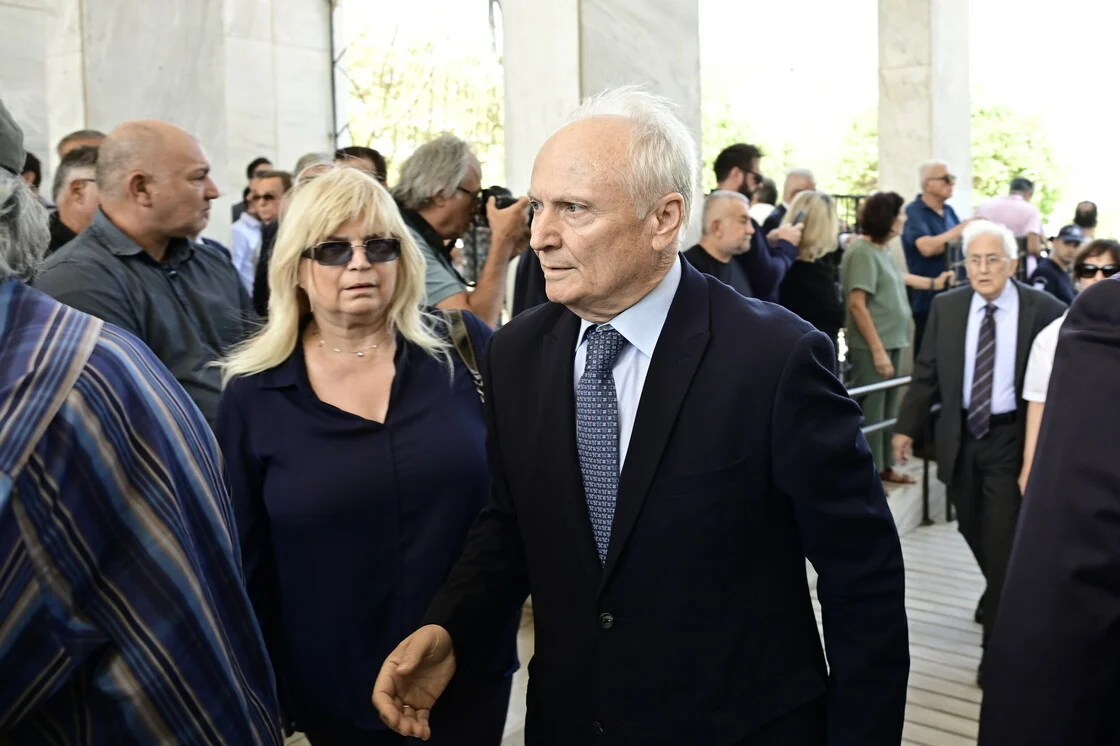 Στεφάνι με συλλυπητήριο μήνυμα απέστειλε ο πρωθυπουργός, γράφοντας: «Τα λόγια φτωχά… Κυριάκος και Μαρέβα Μητσοτάκη». Παρών είναι ο πρώην πρωθυπουργός Κώστας Καραμανλής και η σύζυγός του, Νατάσα Παζαΐτη.