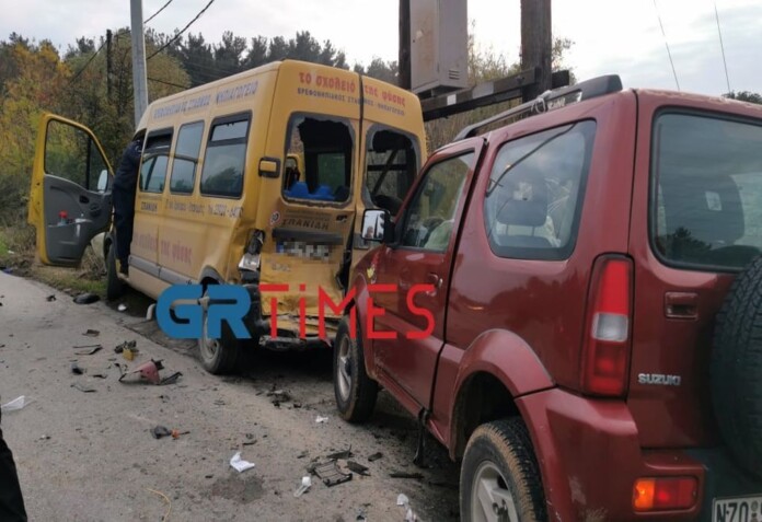 Όπως αναφέρουν οι πρώτες πληροφορίες τζιπ χτύπησε το σχολικό λεωφορείο που προπορευόταν, με αποτέλεσμα το σχολικό να βγει έξω από το δρόμο και να σταματήσει πάνω σε κολόνα.