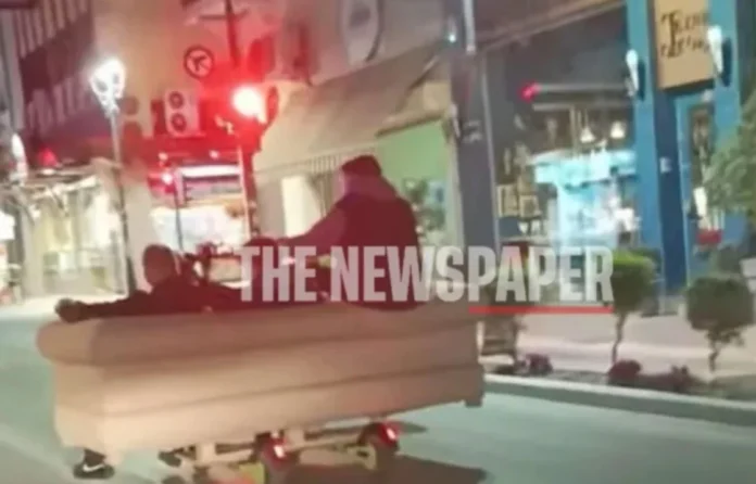 Παρέα νεαρών στον Βόλο έβαλαν καναπέ πάνω σε πατίνια και έκαναν «βόλτα» στον δρόμο, περνώντας με κόκκινο τα φανάρια.
