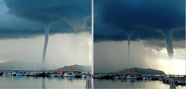 Εντυπωσιακές εικόνες παρουσίασε το ΕΡΤnews, καθώς εμφανίστηκαν δύο υδροστρόβιλοι στην περιοχή της Αίγινας, με τους κατοίκους της περιοχής να αποτυπώνουν το φαινόμενο στα κινητά τους τηλέφωνα.