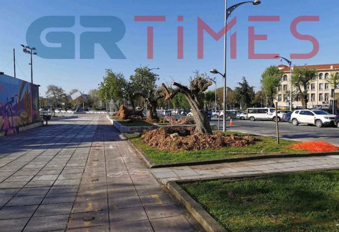 Όπως μεταδίδει το grtimes.gr (ρεπορτάζ Φωτεινή Στεφανοπούλου) οι ελιές αντικαθιστούν τις λεύκες που βρίσκονταν στο πεζοδρόμιο από την πλευρά της ΔΕΘ.