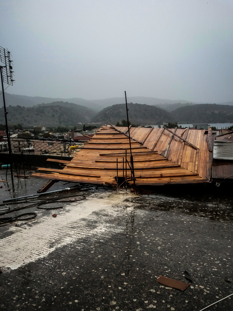 Εκτεταμένες ζημιές σε στέγες σπιτιών και πτώσεις δέντρων προκάλεσε ο ανεμοστρόβιλος