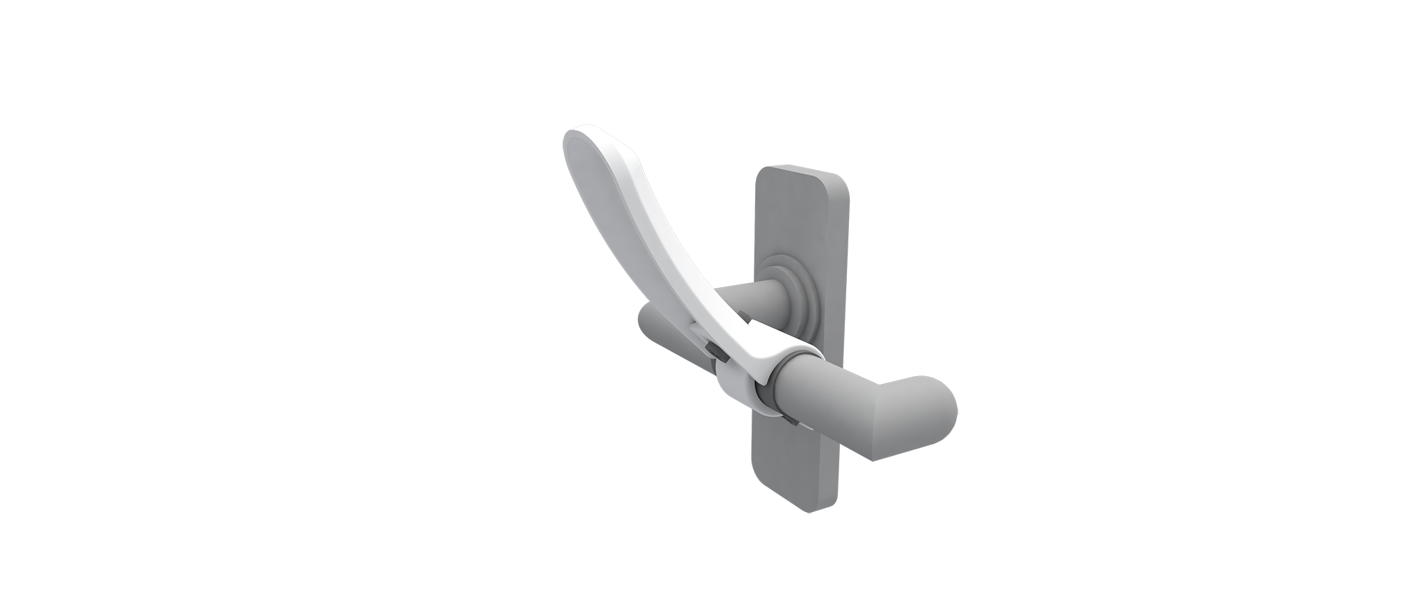 Το hands-free πόμολο, τύπου Materialise, προσφέρει μια δεύτερη, ασφαλή επιλογή στον χειρισμό της πόρτας, καθώς τα πόμολα ανήκουν στην κατηγορία των πιο μολυσμένων από μικρόβια αντικειμένων.