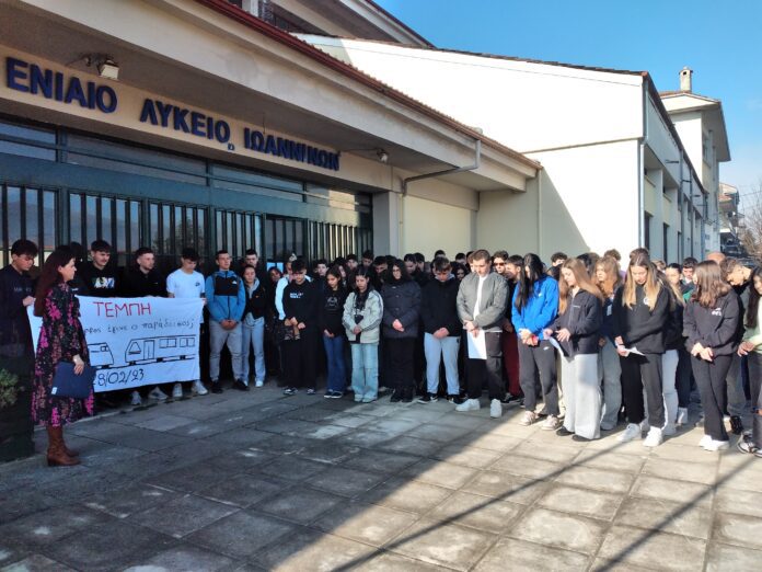 Τη μνήμη των 57 θυμάτων της τραγωδίας των Τεμπών και του σιδηροδρομικού δυστυχήματος που στοιχειώνει ολόκληρη την ελληνική κοινωνία και πάνω απ’ όλα τους συγγενείς των νεκρών, τίμησαν σε μία λιτή εκδήλωση οι μαθητές και ο Σύλλογος Διδασκόντων του 2ου Γενικού Λυκείου Ιωαννίνων.