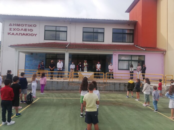 Τους μαθητές του Δημοτικού Σχολείου Καλπακίου υποδέχτηκε ο Διευθυντής, Μίλτος Μάστορας, επισημαίνοντας την ανάγκη για την εφαρμογή των μέτρων προστασίας καθώς και η φετινή χρονιά θα είναι μία χρονιά με πανδημία. «Πέρυσι το σχολείο μας δεν έκλεισε μεμονωμένα και επιθυμία όλων μας είναι η φετινή χρονιά να είναι μία χρονιά με ανοιχτά σχολεία. Παρακαλώ όλα τα παιδιά να συνεχίσουν να τηρούν τα μέτρα και τους γονείς να κάνουν κανονικά τα self tests» τόνισε, επισημαίνοντας παράλληλα ότι το σχολείο συμμετέχει σε πρόγραμμα Εrasmus και θα υλοποιήσει νέες καινοτόμες δράσεις.