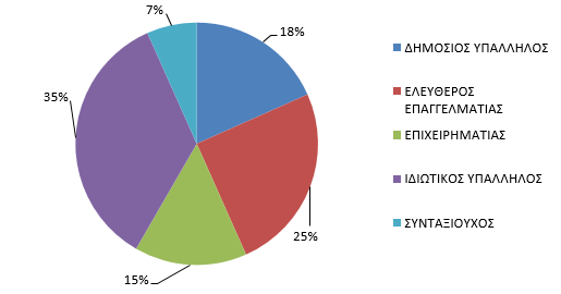 4. Η διάρθρωση του ψηφοδελτίου με βάση την τρέχουσα επαγγελματική δραστηριότητα ή ιδιότητα των υποψηφίων εμφανίζεται παρακάτω: