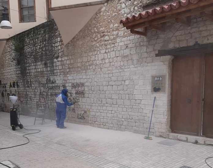 Καθαρό και απαλλαγμένο από γκράφιτι και συνθήματα παραδίδεται το εμβληματικό «Αρχοντικό Πυρσινέλλα».