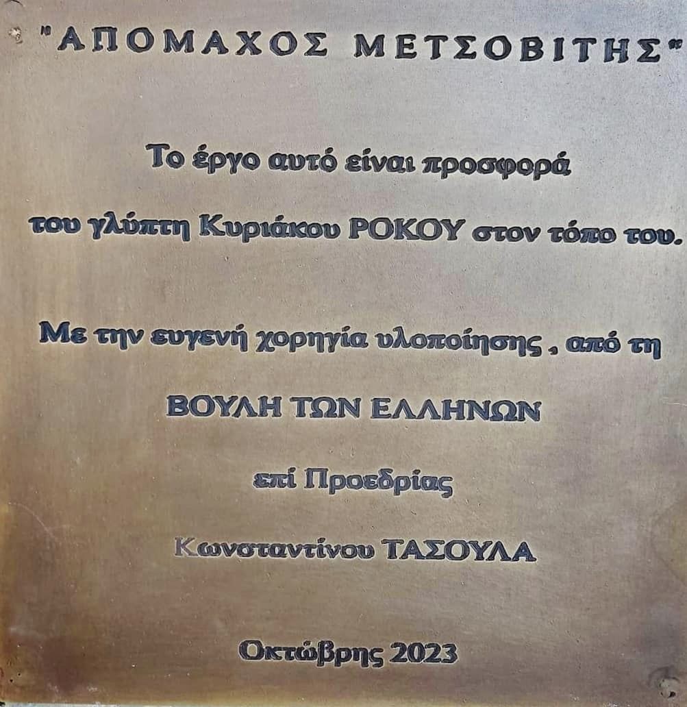 Την Κυριακή 20 Νοεμβρίου πραγματοποιήθηκε στο Μέτσοβο η εκδήλωση αποκαλυπτηρίων του αγάλματος «Ο απόμαχος Μετσοβίτης» έργο του Κυριάκου Ρόκου, η χρηματοδότηση του οποίου έγινε από την Προεδρία της Βουλής.