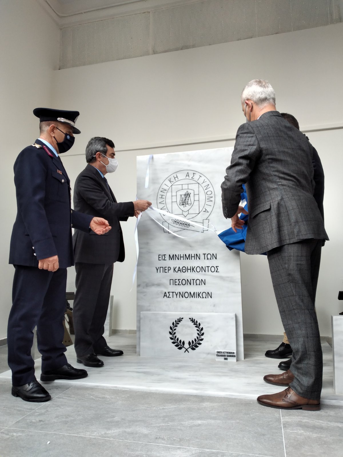 Το λιτό μνημείο, μία μαρμάρινη πλάκα, τοποθετήθηκε δίπλα στην είσοδο του Αστυνομικού Μεγάρου Ιωαννίνων και την Παρασκευή έγιναν τα αποκαλυπτήρια, παρουσία του υφυπουργού Προστασίας του Πολίτη Λευτ. Οικονόμου και του Γεν. Γραμματέα Δημόσιας Τάξης κ. Τσουβάλα. Τα αποκαλυπτήρια έκανε ο κ. Οικονόμου, μαζί με τον Γεν. Επιθεωρητή Βορείου Ελλάδος, αντιστράτηγο της ΕΛ.ΑΣ Κων. Σκούμα, τον πρόεδρο της ΕΑΥΙ Αν. Κωνσταντινίδη και τον πρόεδρο της ΠΟΑΣΥ Γρηγ. Γερακαράκο.