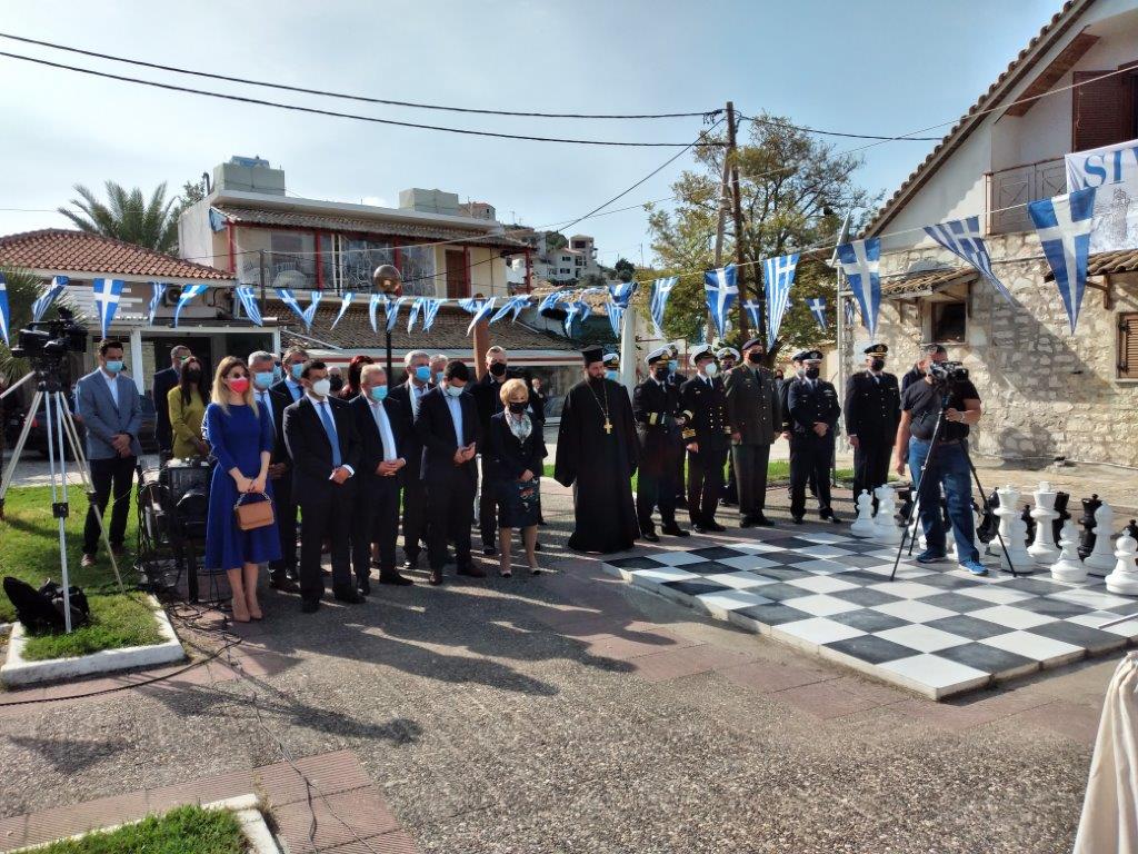 Η εκδήλωση πραγματοποιήθηκε από κοινού από τους δήμους Ηγουμενίτσας και Ύδρας αντίστοιχα, με τους δημάρχους κ.κ Λώλο και Κουκουδάκη αντίστοιχα να κάνουν τα αποκαλυπτήρια του μνημείου.