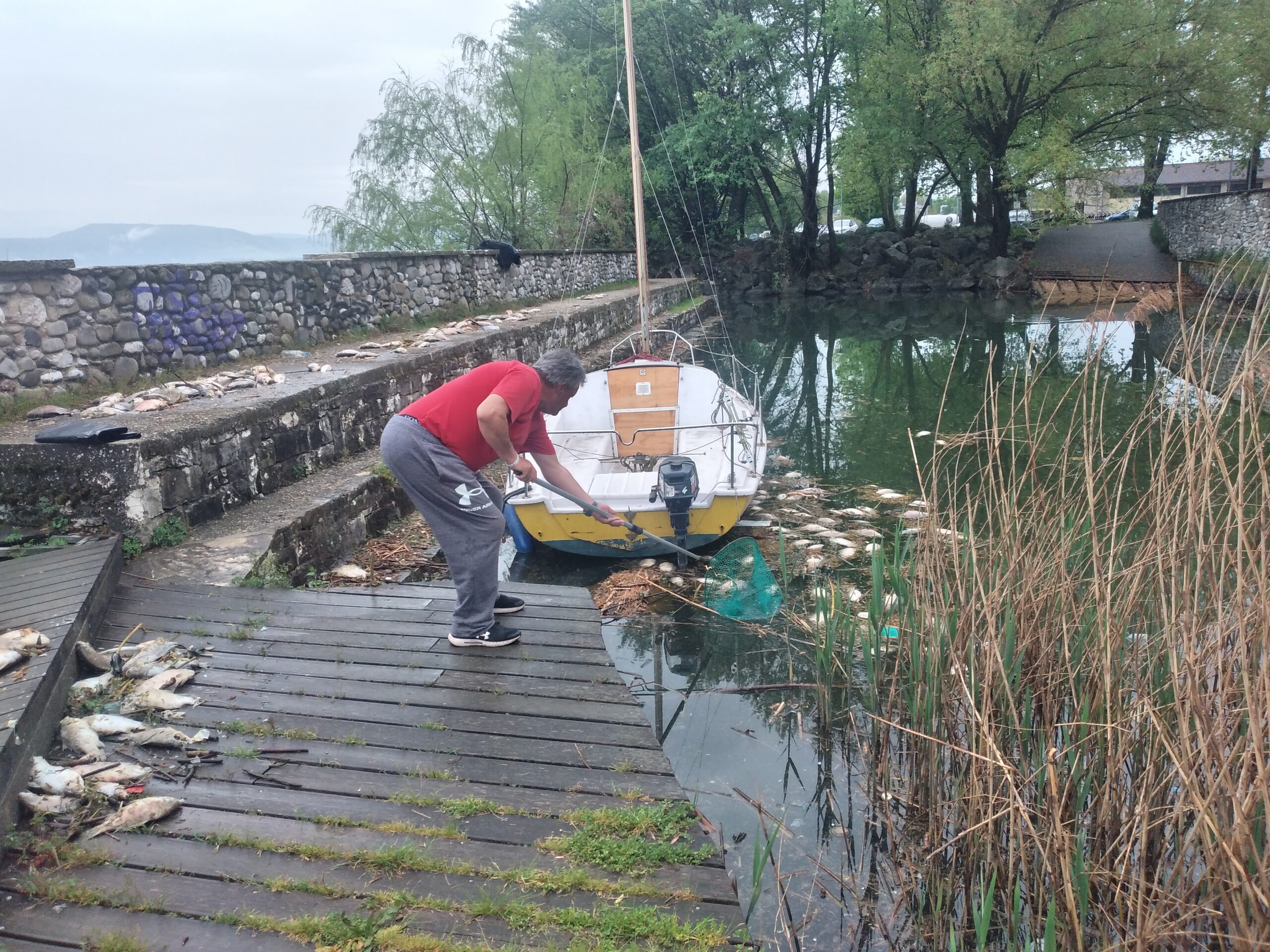 Εργαζόμενοι του Δήμου Ιωαννιτών ανέλαβαν δράση από νωρίς το πρωί για την απομάκρυνση των εκατοντάδων νεκρών ψαριών του είδους «πεταλούδα» από την επιφάνεια της Παμβώτιδας, επιχειρώντας στο λιμανάκι στα παλιά Σφαγεία, εκεί όπου υπήρχαν οι μεγαλύτερες συγκεντρώσεις ψαριών.