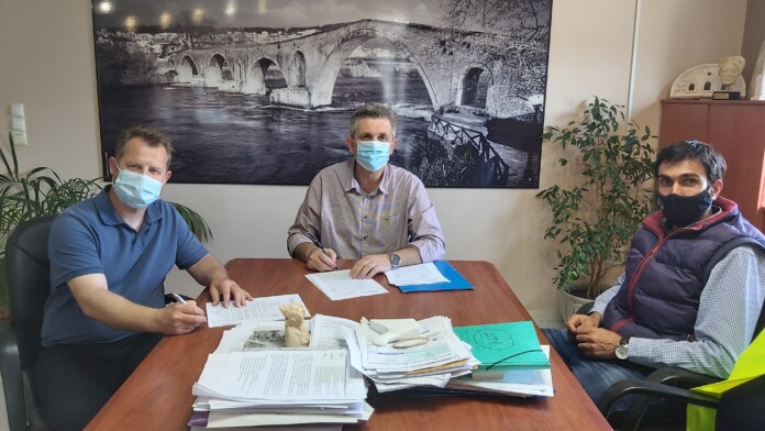 Ένα σημαντικό βήμα για την υλοποίηση ενός ακόμη έργου για τον πρωτογενή τομέα της Άρτας, αρχίζει να πραγματοποιείται, καθώς υπεγράφη μεταξύ του Δημάρχου Αρταίων Χρήστου Τσιρογιάννη και του αναδόχου του έργου, Θωμά Χριστιά, παρουσία και του Αντιδημάρχου Γιώργου Πανέτα, η σύμβαση που αφορά την « Βελτίωση – Ασφαλτοστρώση αγροτικών οδών στη Τοπική Κοινότητα Γραμμενίτσας».