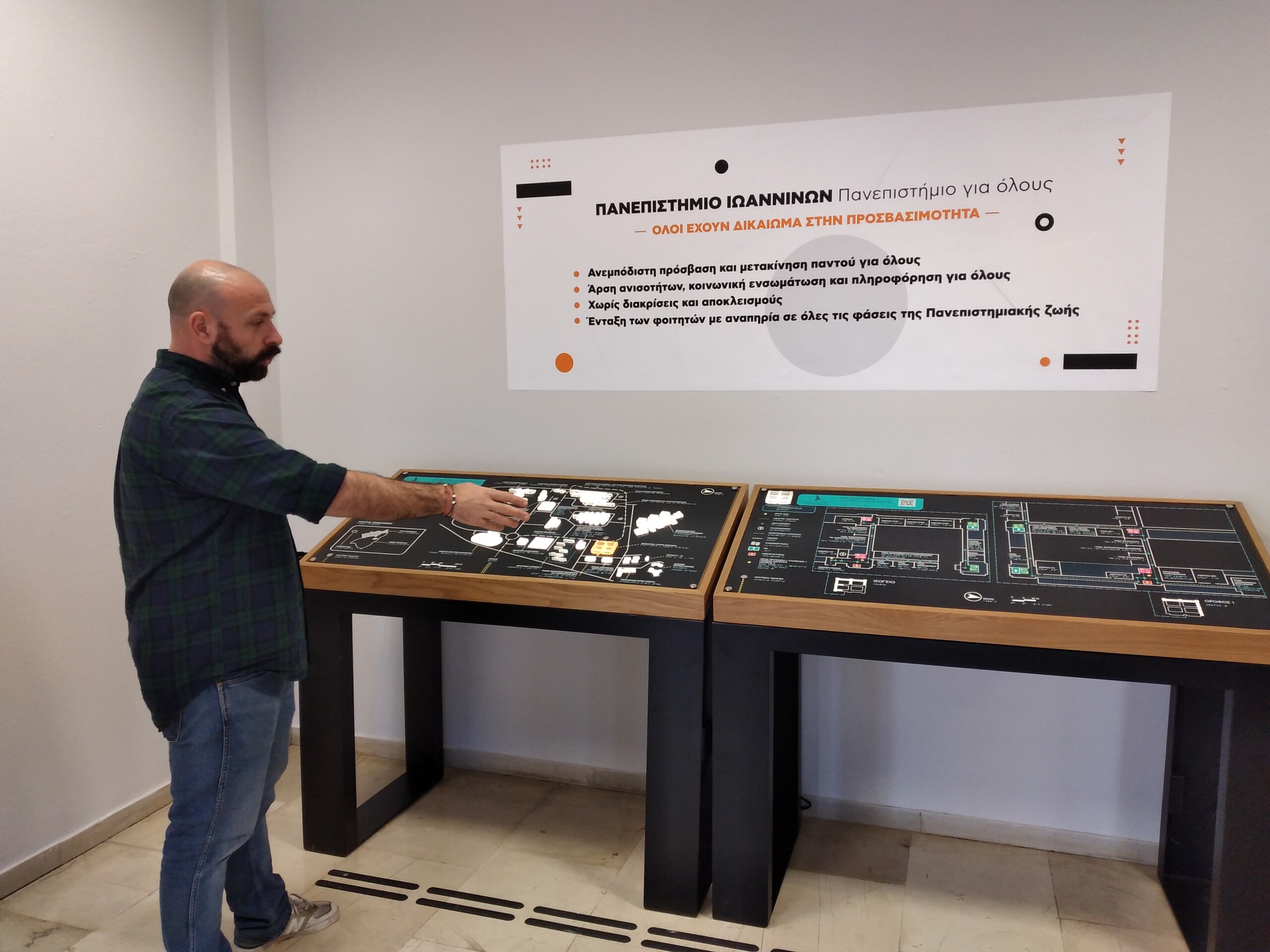 Μία πραγματική και όχι θεωρητική ανάγκη καλύπτει το Πανεπιστήμιο Ιωαννίνων για τους φοιτητές και άλλα μέλη της πανεπιστημιακής κοινότητας που αντιμετωπίζουν κάποιας μορφής αναπηρία, κυρίως βέβαια προβλήματα όρασης ή και τύφλωσης ακόμη, με την τοποθέτηση απτικών χαρτών και οδηγών όδευσης τυφλών σε καίρια σημεία, όπως στο Μεταβατικό κτίριο και στη Βιβλιοθήκη.