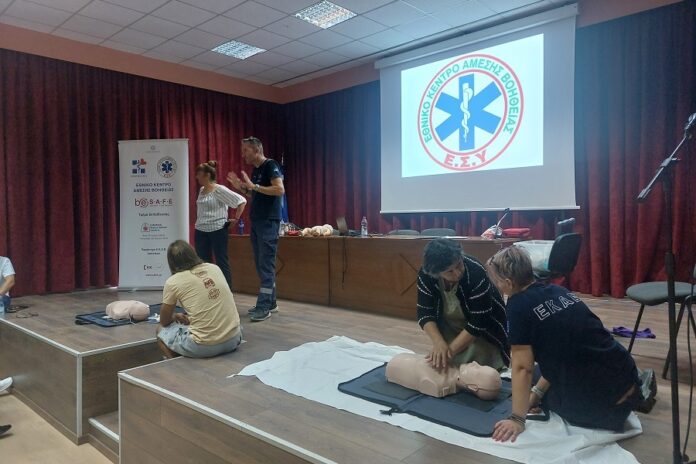 Οι συμμετέχοντες είχαν την ευκαιρία να εκπαιδευτούν από τους διασώστες – εκπαιδευτές του παραρτήματος Ιωαννίνων του ΕΚΑΒ Βάσω Κονταξή και Αλέξανδρο Ντάρα, σε κρίσιμες δεξιότητες, όπως η αντιμετώπιση πνιγμονής και η παροχή καρδιοπνευμονικής αναζωογόνησης (ΚΑΡΠΑ), καθώς και να ενημερωθούν για τις βασικές αρχές της πρωτοβουλίας Be S.A.F.E., η οποία στοχεύει στην ενίσχυση της ετοιμότητας και της άμεσης αντίδρασης σε έκτακτα περιστατικά.