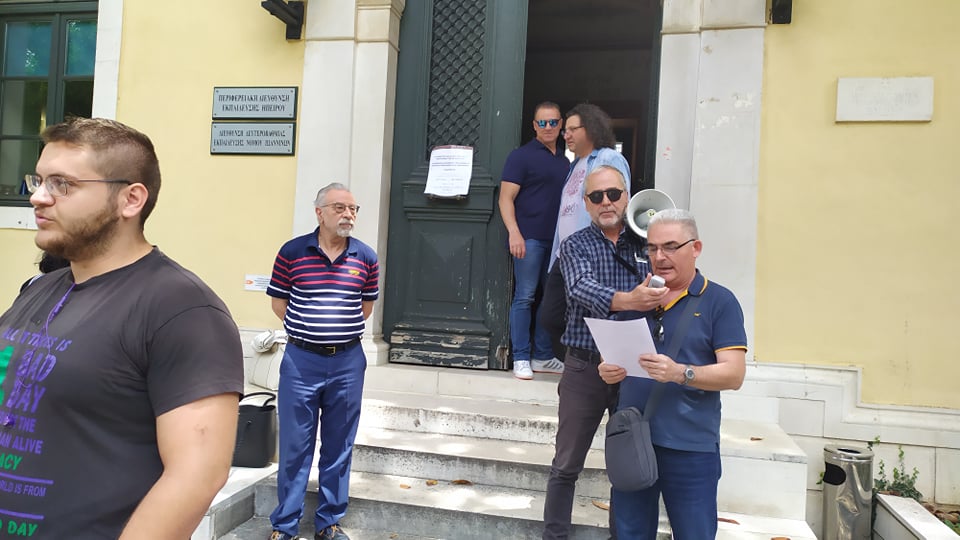 Παράσταση διαμαρτυρίας έκαναν την Τρίτη το μεσημέρι στην διεύθυνση περιφερειακής εκπαίδευσης εκπρόσωποι των εκπαιδευτικών με ειδικότητες οικονομικών, οικιακής οικονομίας, εικαστικών και άλλοι, τα μαθήματα των οποίων είτε καταργούνται είτε μειώνουν τις ώρες στο ωρολόγιο πρόγραμμα.