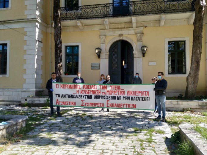 Παράσταση διαμαρτυρίας πραγματοποίησαν εκπαιδευτικοί του ΠΑΜΕ στην Περιφερειακή Διεύθυνση Εκπαίδευσης Ηπείρου ενόψει της κατάθεσης του πολυνομοσχεδίου μετά τις γιορτές του Πάσχα.