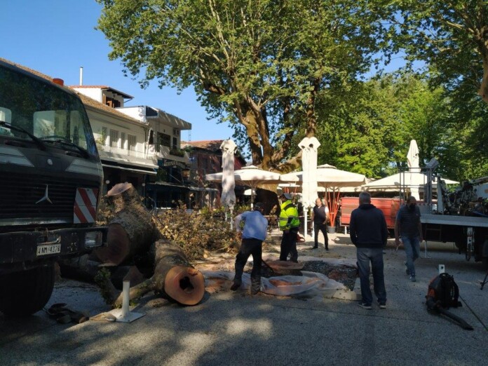 Στην κοπή ενός ακόμη πλατάνου προχώρησε νωρίς σήμερα το πρωί το Τμήμα Πρασίνου του δήμου Ιωαννιτών