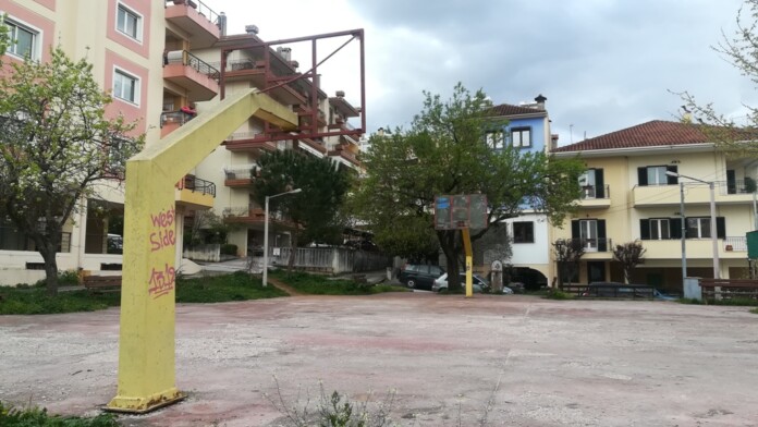 Δύο μπασκέτες στο παρκάκι της Κοτοπούλη στους Αμπελόκηπους που δεν είναι λειτουργικές και δεν χρησιμοποιούνται εδώ και χρόνια.