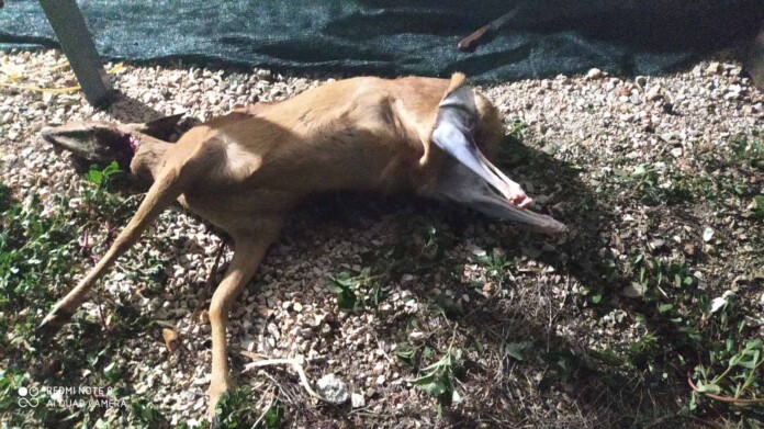 Κλιμάκιο της Ομοσπονδιακής Θηροφυλακής που εκτελούσε προγραμματισμένη περιπολία, βραδινές ώρες, εντόπισε σε αγροτική περιοχή στη θέση «Δίπλα» της Τ.Κ. Μεγάρχης, του Δήμου Νικολάου Σκουφά, τον οδηγό ενός αγροτικού Ι.Χ, να φτάνει σε μία αποθήκη και να μεταφέρει ένα θηρευμένο ζαρκάδι.