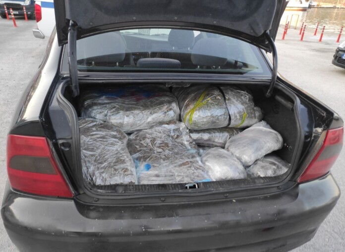 Κατά την έρευνα που ακολούθησε βρέθηκαν και κατασχέθηκαν στο χώρο των αποσκευών του αυτοκινήτου 19 δέματα με ακατέργαστη κάνναβη, συνολικού βάρους 56 κιλών και 900 γραμμαρίων.