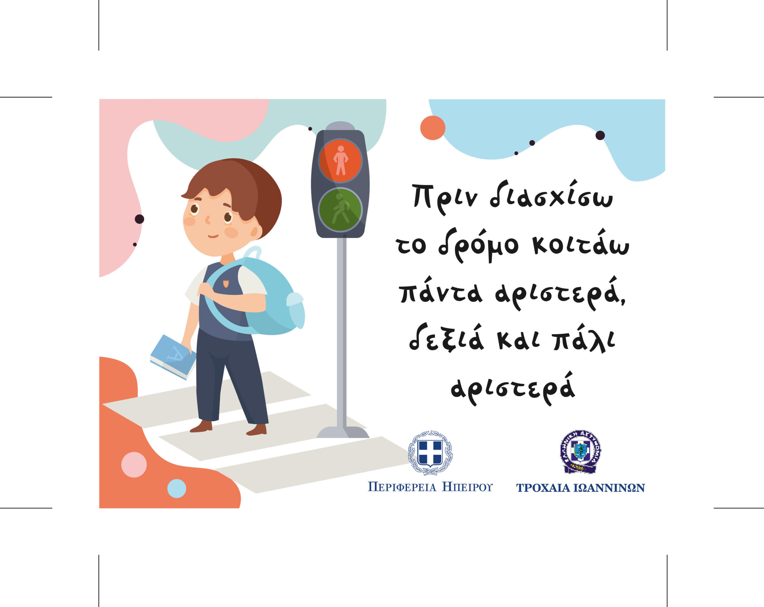 Ακόμη, προσωπικό του Τμήματος Τροχαίας Ιωαννίνων διένειμε ενδεικτικά σε μαθητές της Α΄ Δημοτικού των σχολικών συγκροτημάτων, στα οποία παραβρέθηκε κατά την ημέρα του καθιερωμένου Αγιασμού, σχολικά τετράδια με συμβουλές οδικής ασφάλειας που περιέχονται στο εξώφυλλο και οπισθόφυλλό τους.