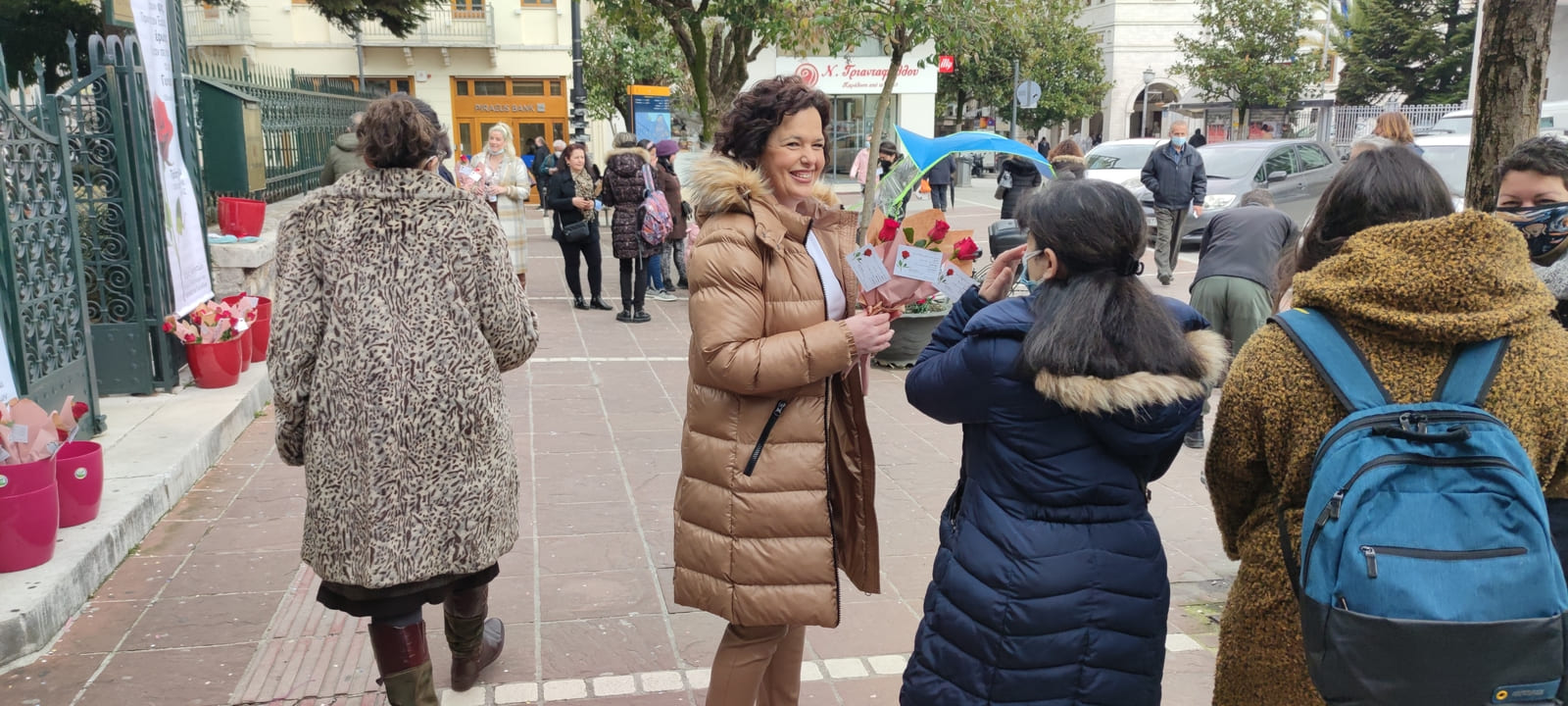 Από το πρωί η είσοδος του δημαρχείου στολίστηκε, το ΔΗΠΕΘΕ μερίμνησε για την μουσική και από την εντεταλμένη σύμβουλο Γιάννα Μαμακή και εθελόντριες του Μητρώου που έχει δημιουργήσει ο Δήμος διανεμήθηκαν δεκάδες κόκκινα τριαντάφυλλα σε γυναίκες κάθε ηλικίας.