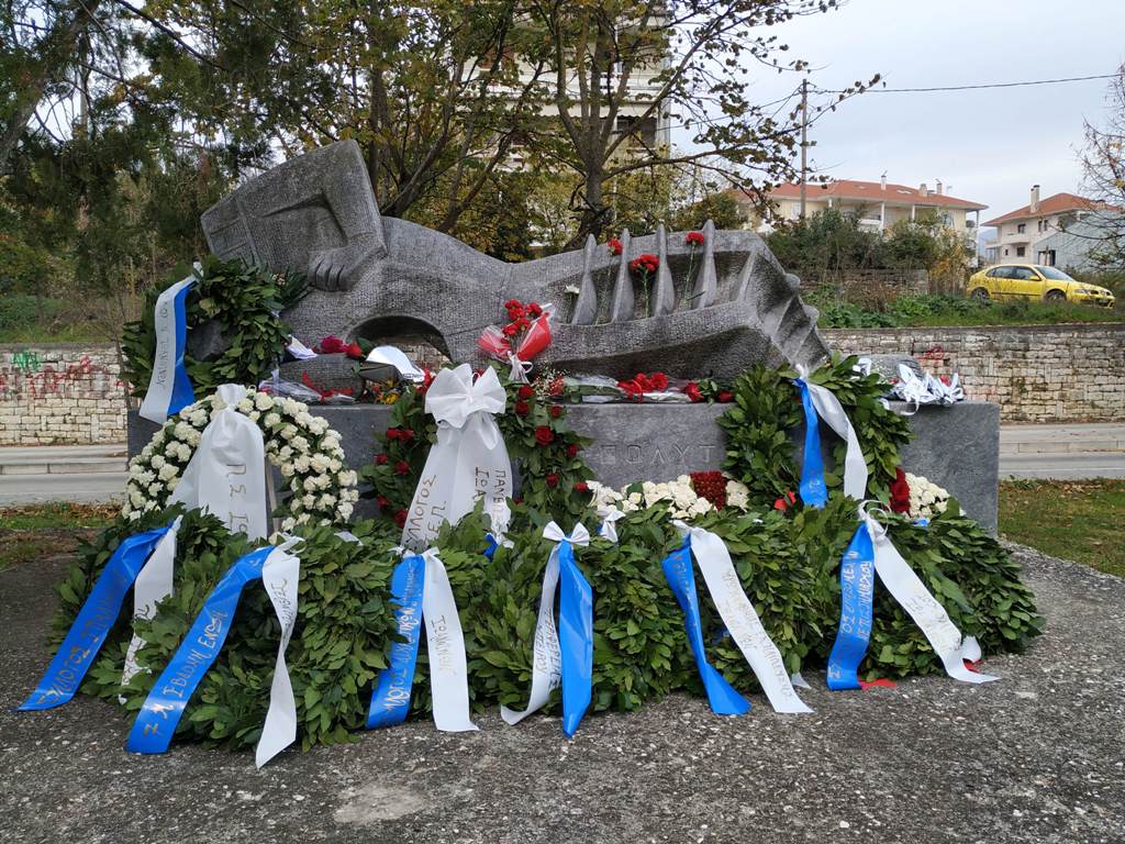 Με μία λιτή εκδήλωση, παρουσία τοπικών φορέων και οργανώσεων για την καθιερωμένη κατάθεση στεφάνων και την τήρηση όλων των προβλεπόμενων μέτρων προστασίας, τιμήθηκε φέτος η επέτειος του Πολυτεχνείου στο Μνημείο των Ιωαννίνων.
