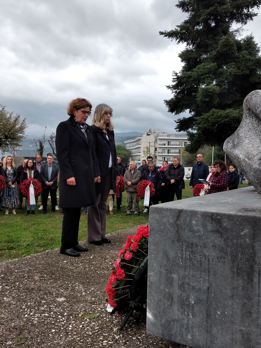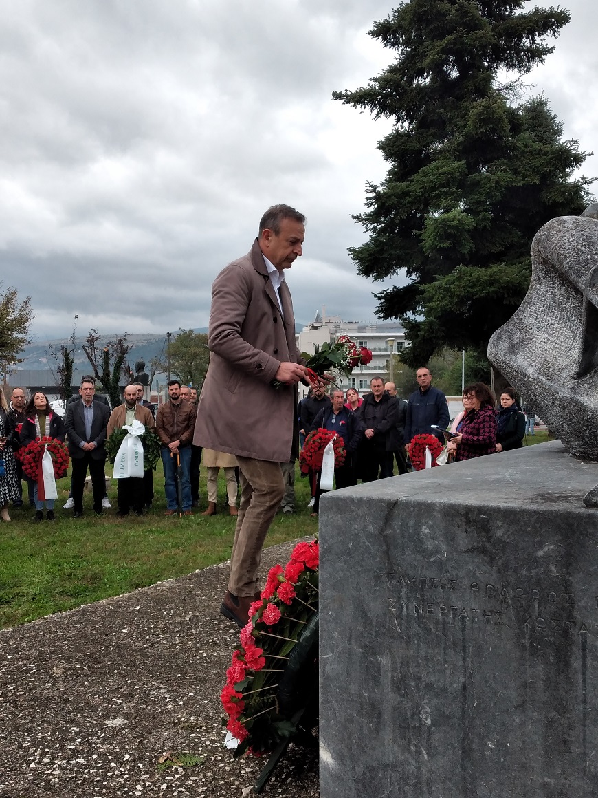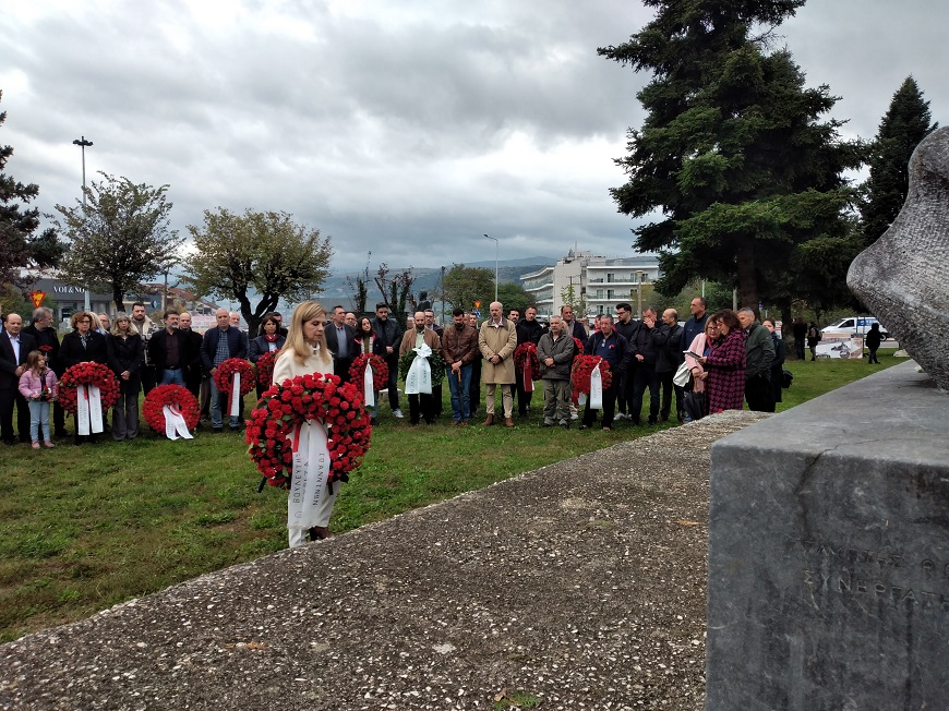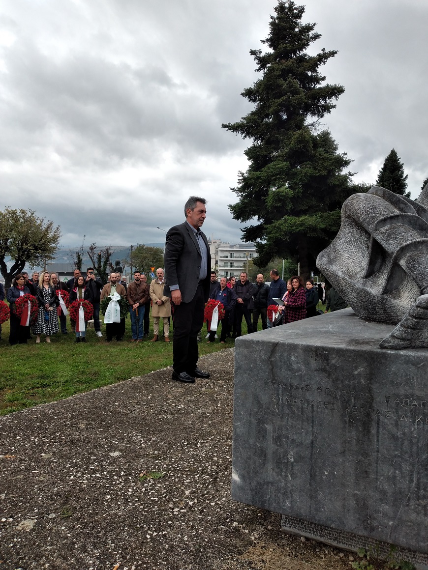 Το πρωί της Παρασκευής, ανήμερα του εορτασμού της επετείου, δεκάδες εκπρόσωποι φορέων και αρχών της πόλης, συνδικαλιστικών παρατάξεων και συντεχνιακών οργανώσεων, συλλογικοτήτων και εθελοντικών ομάδων, έδωσαν το «παρών» στην καθιερωμένη, λιτή εκδήλωση μνήμης στην πλατεία των Ηρώων Πολυτεχνείου. Το Πανεπιστήμιο Ιωαννίνων, η Περιφέρεια Ηπείρου, ο Δήμος Ιωαννιτών, κόμματα και περιφερειακές και δημοτικές παρατάξεις και εκπρόσωποι συλλόγων κατέθεσαν στεφάνια στο γλυπτό του Θόδωρου Παπαγιάννη.