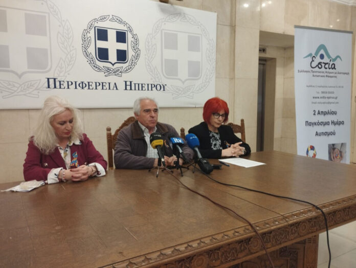 Για την σημερινή εκδήλωση και τη σημασία που έχει η ενημέρωση και ευαισθητοποίηση της τοπικής κοινωνίας γύρω από το θέμα του αυτισμού και τα προβλήματα που βιώνουν στην καθημερινότητά τους τα άτομα που είναι στο φάσμα του αυτισμού, όπως και οι φροντιστές τους, μίλησαν σε συνέντευξη Τύπου που παραχώρησαν, ο πρόεδρος του Συλλόγου «Εστία» Χρ. Θέμος, η εντεταλμένη περιφερειακή σύμβουλος για θέματα Κοινωνικής Πρόνοιας και Συνοχής Μαργ. Γκογκάκη και η πρόεδρος της ΧΕΝ Ιωαννίνων, δημοσιογράφος και ραδιοφωνική παραγωγός Πόπη Στεφανίδη.