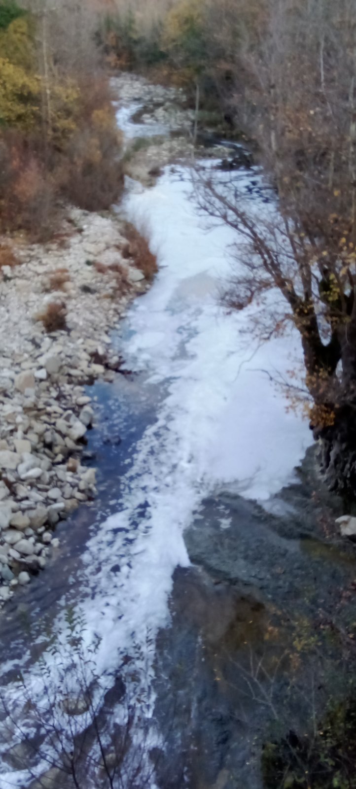 Το φορτίο της νταλίκας που τυλίχθηκε στις φλόγες τη Δευτέρα το μεσημέρι στο 39ο χιλιόμετρο της Εγνατίας οδού στο ρεύμα από Ιωάννινα προς Ηγουμενίτσα φαίνεται πως «ευθύνεται» για την απαράδεκτη εικόνα με μεγάλες ποσότητες αφρού και σαπουνάδας να έχουν εμφανιστεί από την Πέμπτη σε παραπόταμο του ποταμού Τύρια, στα όρια των νομών Ιωαννίνων και Θεσπρωτίας.