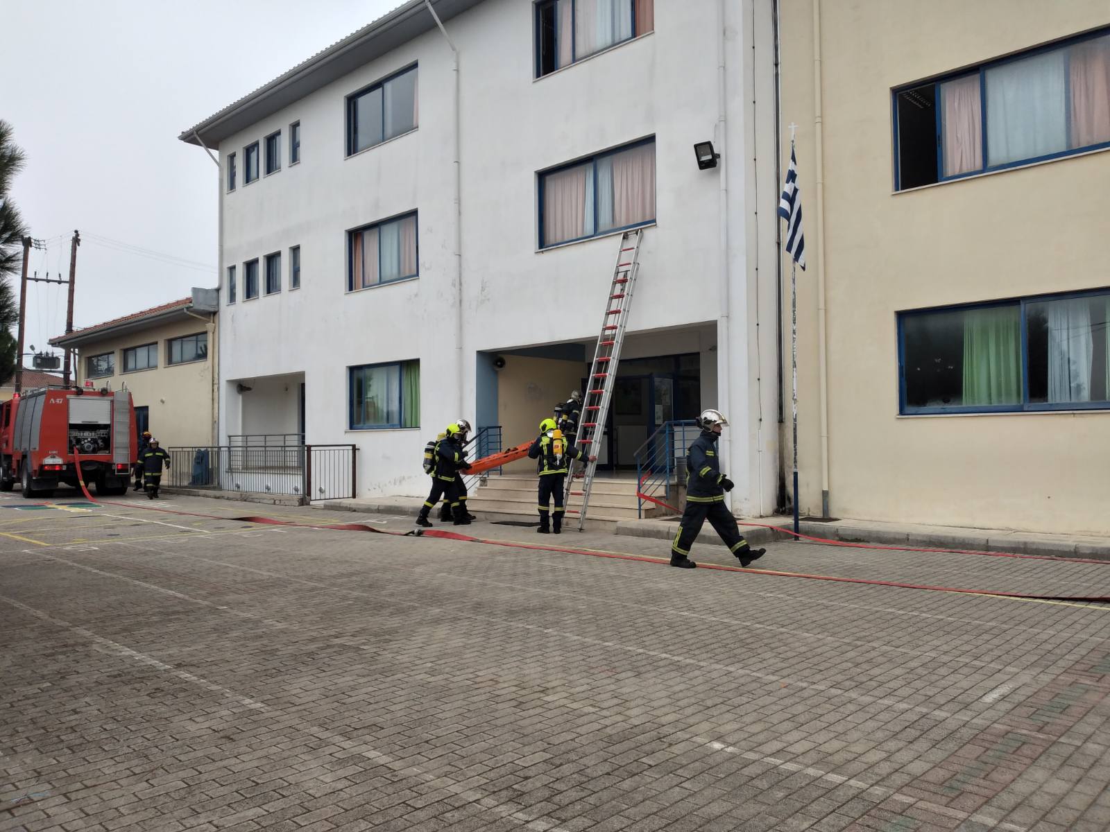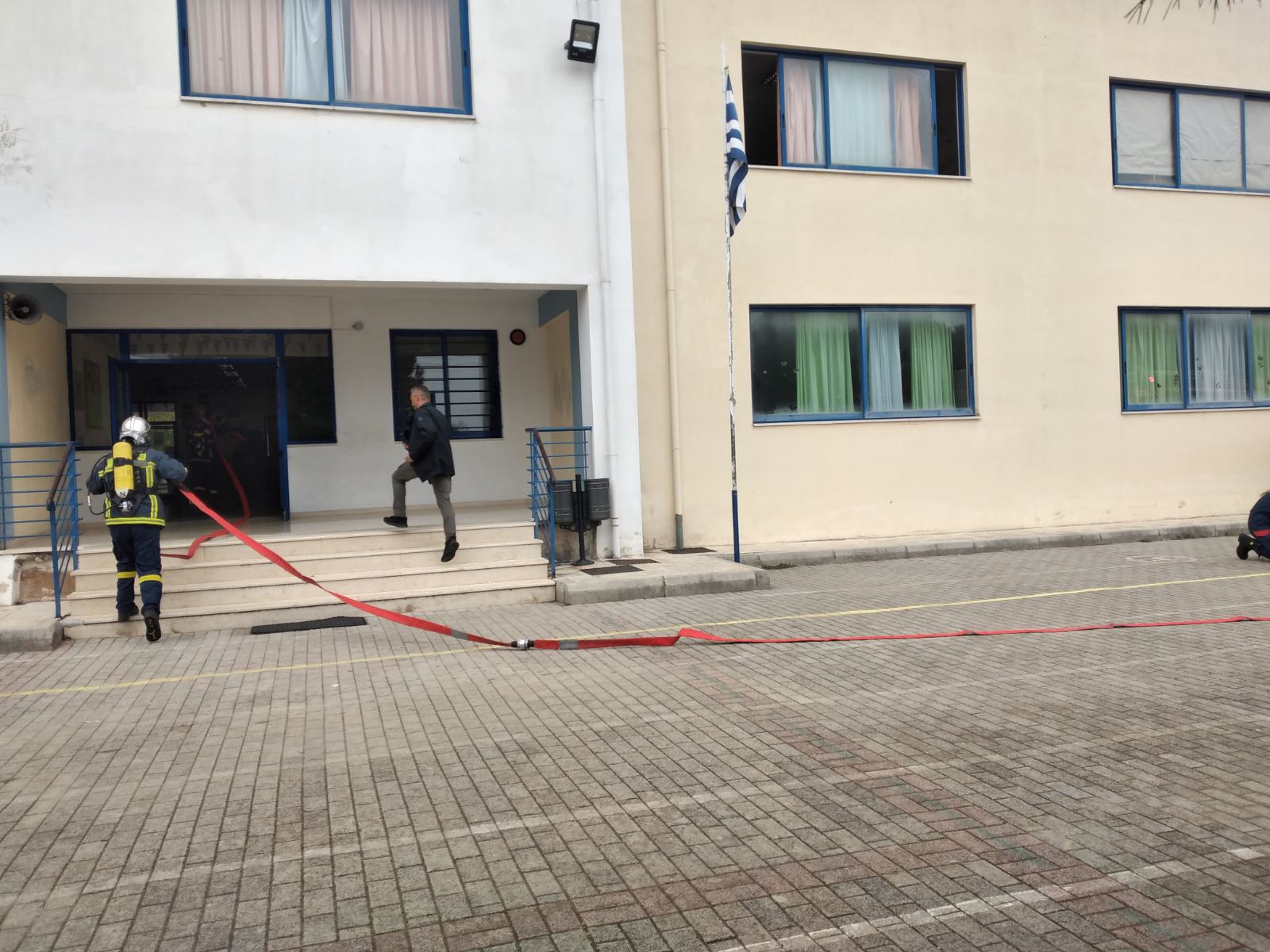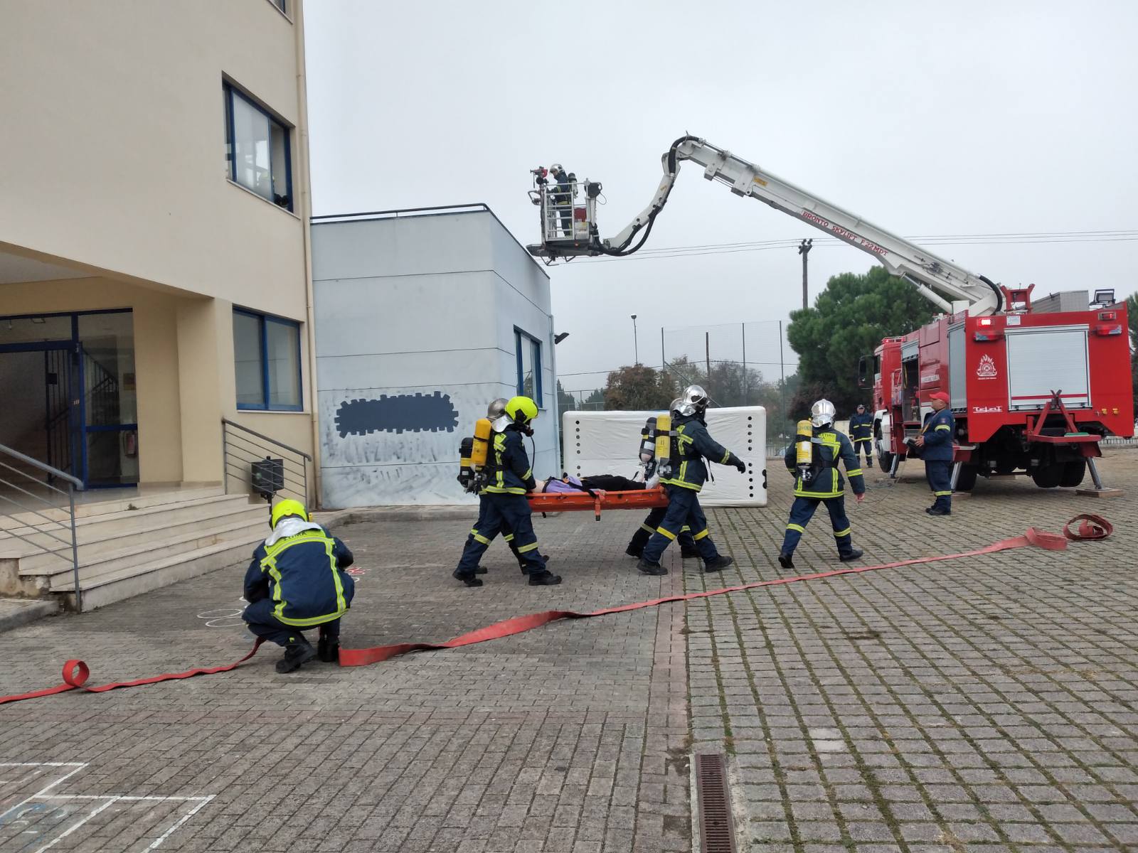 Επίσης, 10 μαθητές απεγκλωβίστηκαν από τον πρώτο όροφο του κτιρίου με τη χρήση βραχιονοφόρου οχήματος της Πυροσβεστικής, ενώ η άσκηση ολοκληρώθηκε με την πτώση πυροσβέστη και ενός εκπαιδευτικού, από τον πρώτο όροφο στο στρώμα ασφάλειας και με την κατάσβεση πυρκαγιάς, με τη χρήση πυροσβεστήρων.