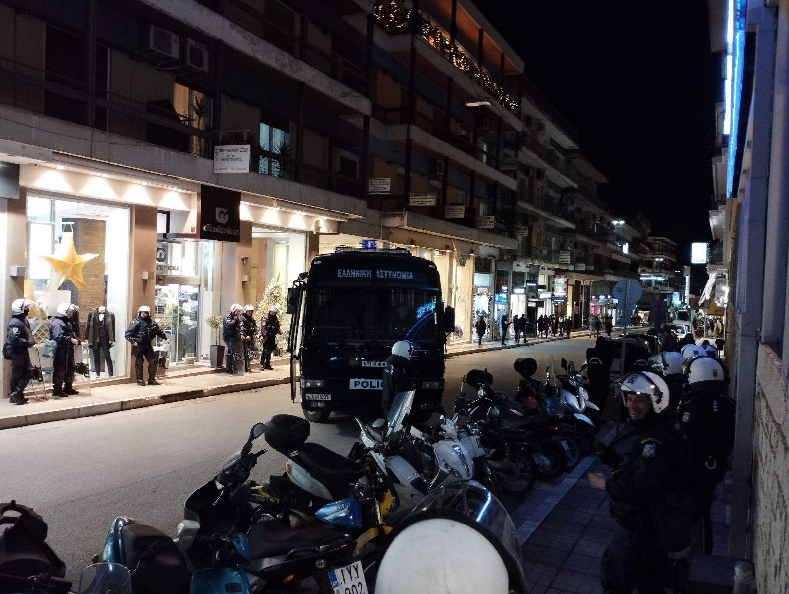Το σκηνικό της έντασης δεν κράτησε περισσότερο από ενάμιση λεπτό με τους διαδηλωτές να κατευθύνονται προς την κεντρική πλατεία, αναποδογυρίζοντας κάποιους κάδους απορριμμάτων στο ύψος της Λέσχης Αξιωματικών, ενώ έσπασαν και κάποιες τζαμαρίες σε κλειστά τραπεζικά υποκαταστήματα.