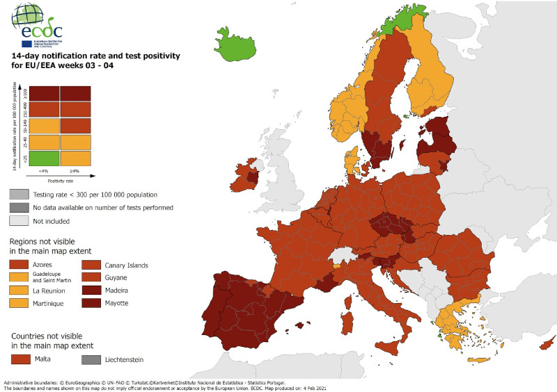 Καλύτερη είναι η επιδημιολογική εικόνα του κορωνοϊού στην Ελλάδα, σε σχέση με άλλες χώρες της Ευρώπης σύμφωνα με τον ανανεωμένο χάρτη του Ευρωπαϊκού Κέντρου Πρόληψης και Ελέγχου Ασθενειών (ECDC).