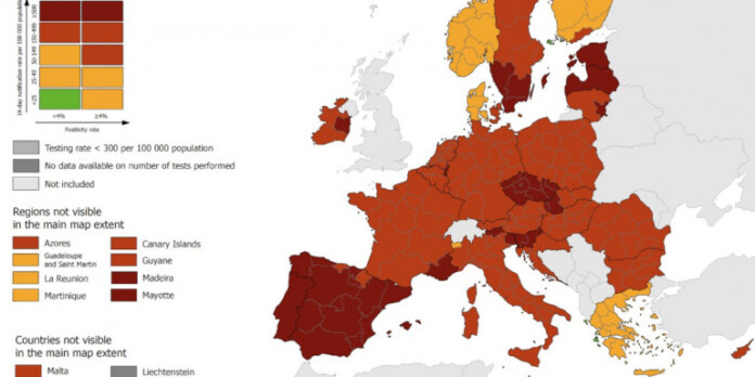 Ο νέος χάρτης της πανδημίας με περιοχές της ΕΕ
