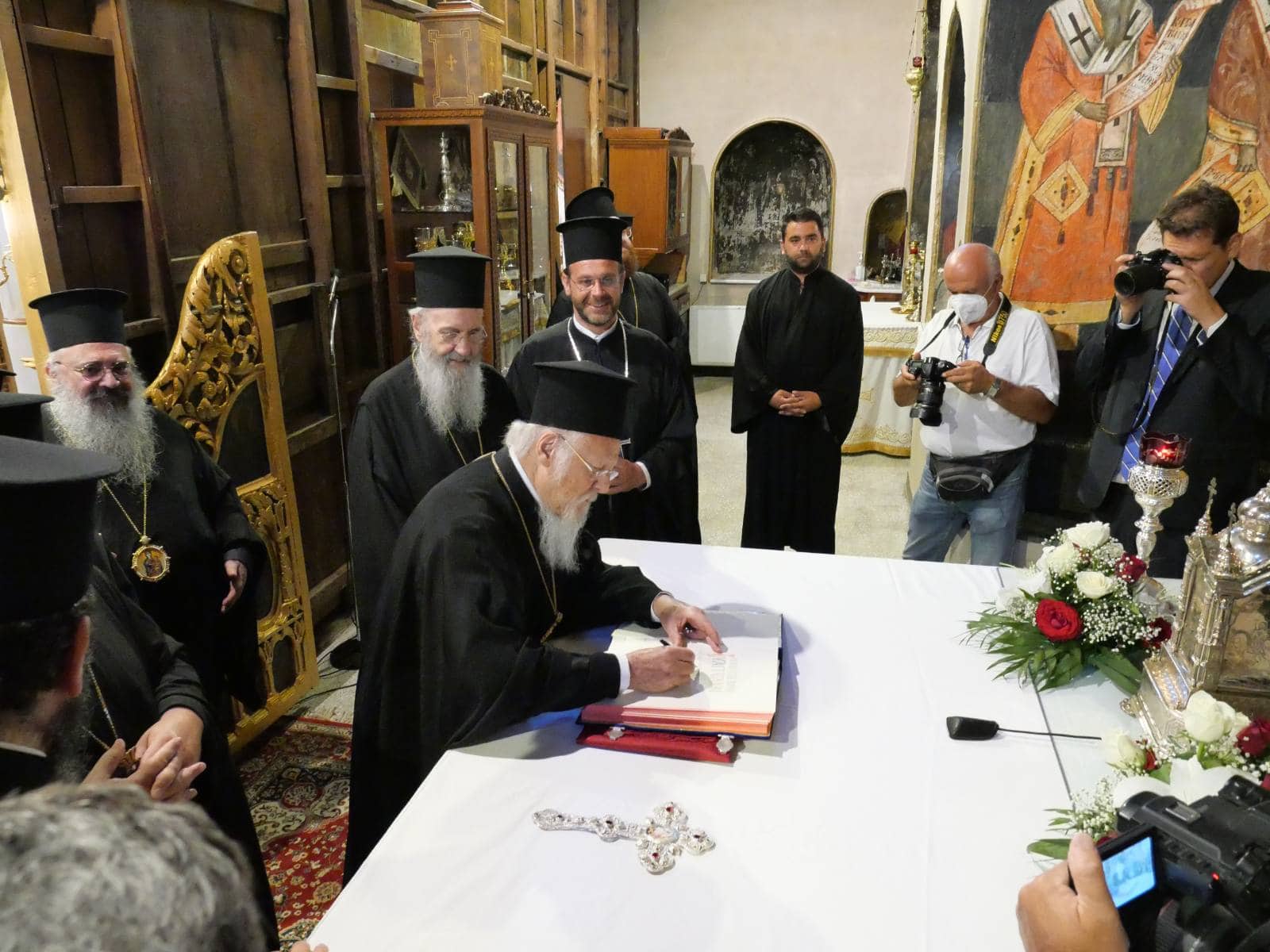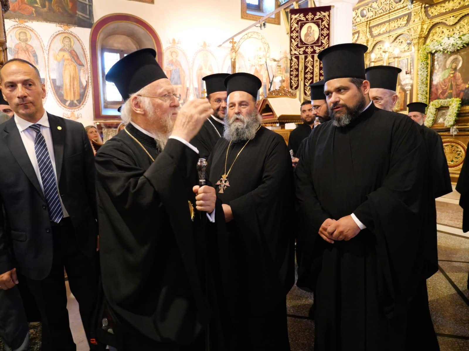 Ο Οικουμενικός Πατριάρχης στην αντιφώνησή του ευχαρίστησε τον Δήμαρχο και το Δημοτικό Συμβούλιο εκφράζοντας την συγκίνηση και την χαρά του για την παρουσία του στην περιοχή ενώ έκανε αναφορά στην επίσκεψη που είχε πραγματοποιήσει το 1999.