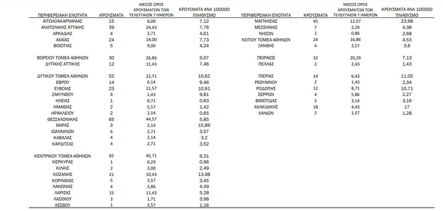 Η κατανομή των νέων μολύνσεων σε όλη τη χώρα