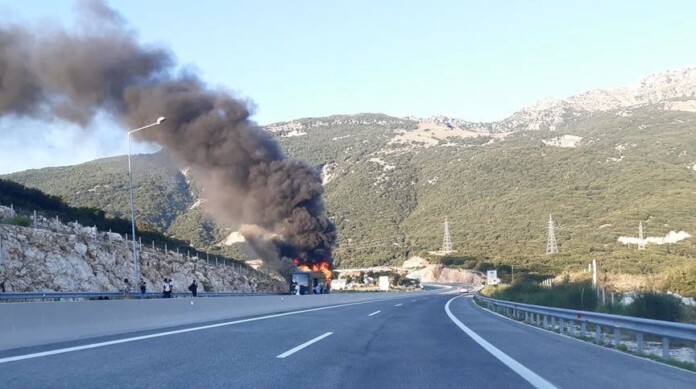 Φωτιά πήρε λεωφορείο που κινούνταν στην Ιόνια Οδό με κατεύθυνση προς Αθήνα πριν από τον Αμμότοπο.