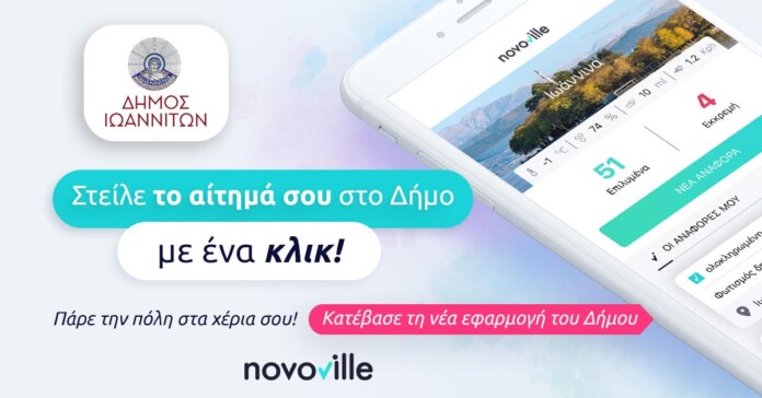 Ο Δήμος Ιωαννιτών στο πλαίσιο της άμεσης και καλύτερης επικοινωνίας με τους πολίτες έχει θέσει σε λειτουργία την πλατφόρμα καταγραφής αιτημάτων Novoville.