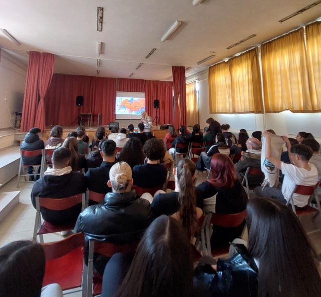 Ομιλία της Νικολέττας Τσιτσανούδη-Μαλλίδη στο ΓΕΛ Πεδινής για την Παγκόσμια Ημέρα Ελληνικής Γλώσσας