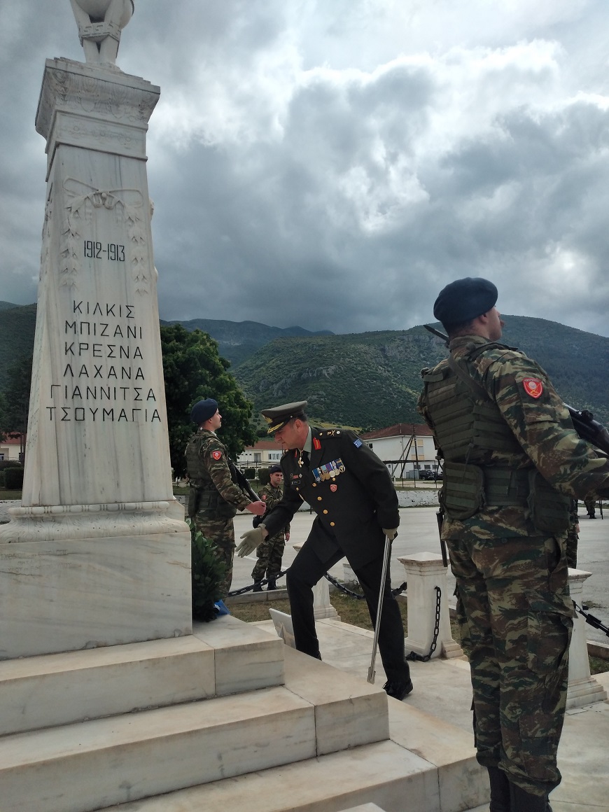 Μετά την άφιξη της πολεμικής σημαίας και του αγήματος με τη συνοδεία της Στρατιωτικής Μπάντας, αναγνώστηκε η ημερήσια διαταγή του Αντιστρατήγου Γεώργιου Κωστίδη, Αρχηγού ΓΕΣ, ενώ αμέσως μετά ο Ταξίαρχος, διοικητής της 8ης Μηχανοποιημένης Ταξιαρχίας Γεώργιος Παππάς κατέθεσε στεφάνι στο μνημείο ηρώων.