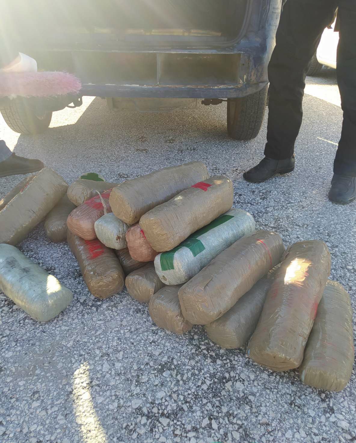 Σε επισταμένη έρευνα που ακολούθησε στο όχημα, με τη συνδρομή του αστυνομικού σκύλου ανίχνευσης ναρκωτικών «Lussy», βρέθηκαν σε ειδικά διαμορφωμένη κρύπτη στο σασί του οχήματος, η οποία είχε είσοδο από τον πίσω προφυλακτήρα, 35 δέματα που περιείχαν ακατέργαστη κάνναβη, συνολικού βάρους 35 κιλών και 880 γραμμαρίων.