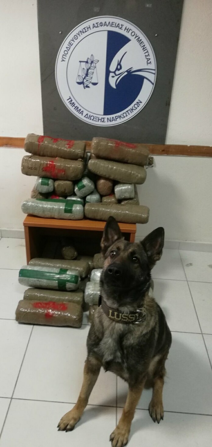 Σε επισταμένη έρευνα που ακολούθησε στο όχημα, με τη συνδρομή του αστυνομικού σκύλου ανίχνευσης ναρκωτικών «Lussy», βρέθηκαν σε ειδικά διαμορφωμένη κρύπτη στο σασί του οχήματος, η οποία είχε είσοδο από τον πίσω προφυλακτήρα, 35 δέματα που περιείχαν ακατέργαστη κάνναβη, συνολικού βάρους 35 κιλών και 880 γραμμαρίων.