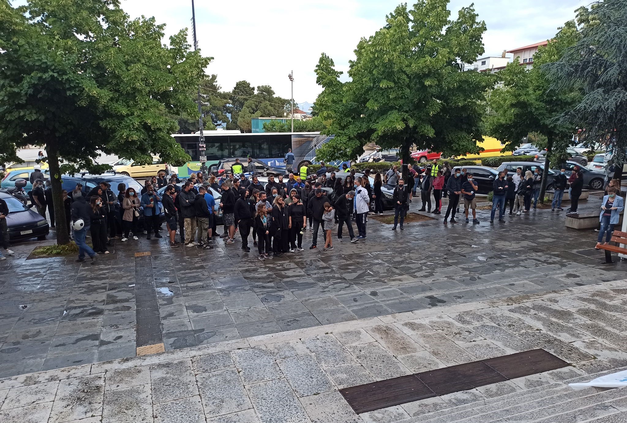 Στη συνέχεια το πλήθος μαζεύτηκε στην κεντρική πλατεία, έξω από το κτίριο της Περιφέρειας, όπου και ολοκληρώθηκε η διαμαρτυρία.