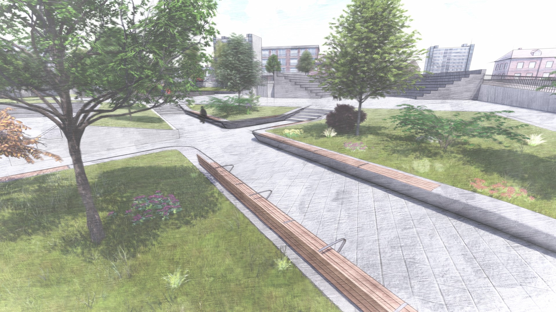Επιπλέον θα φυτευτούν 20 νέα δέντρα. Η μορφολογική οργάνωση του νέου χώρου, προβλέπει νέα πλακόστρωση κατασκευές σκυροδεμάτων με ξύλινες λωρίδες για τη δημιουργία σημείων ξεκούρασης για το κοινό, αλλά και σύγχρονο φωτισμό με αυτόνομα ηλιακά φωτιστικά τύπου LED.